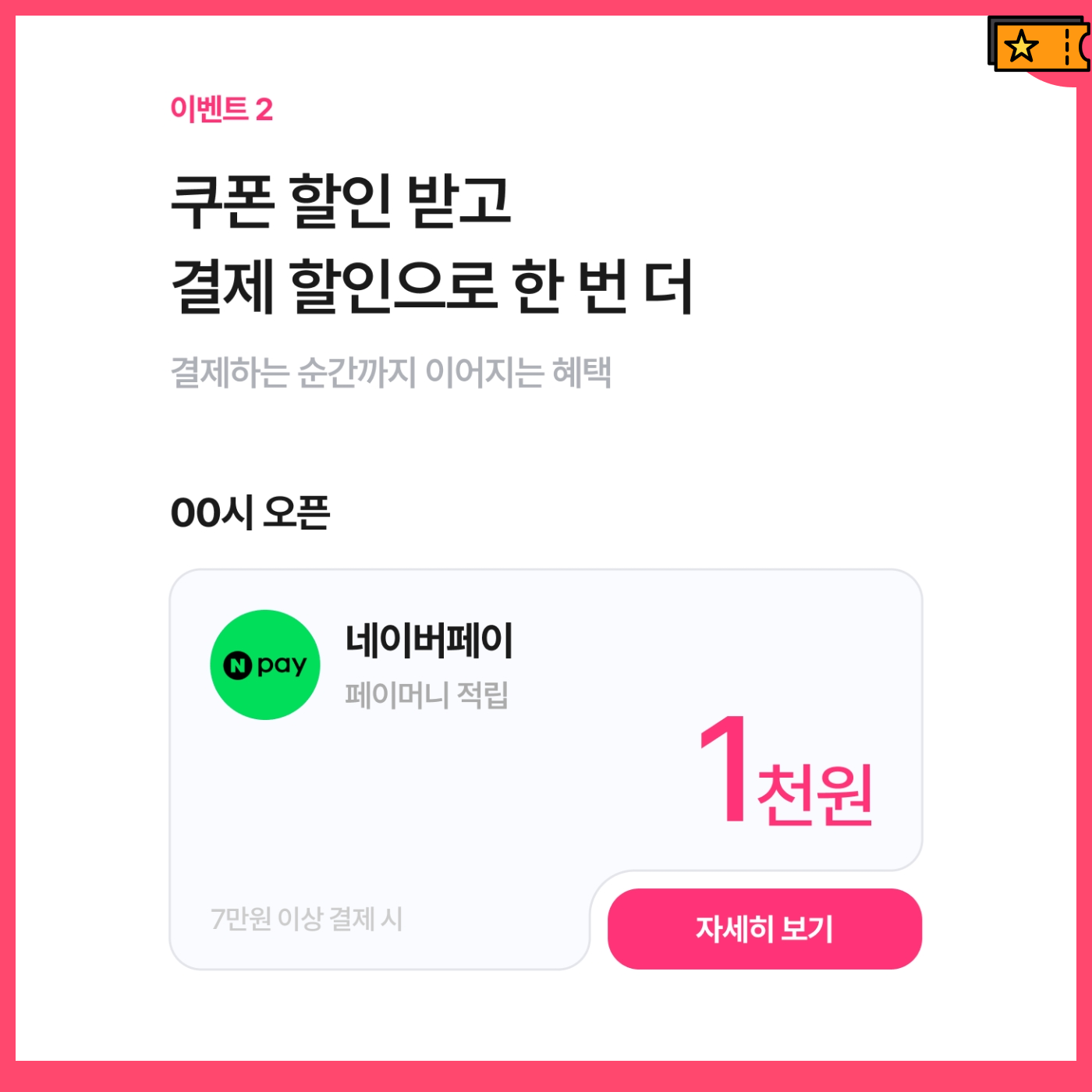 이외에도 선착순으로 결제 할인 이벤트도 제공하고 있습니다.