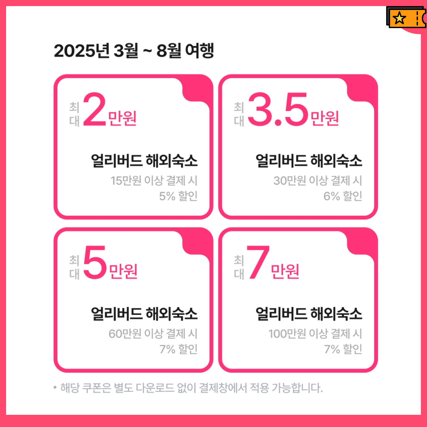 항공권 뿐만 아니라 해외숙소 쿠폰도 있는데요!
