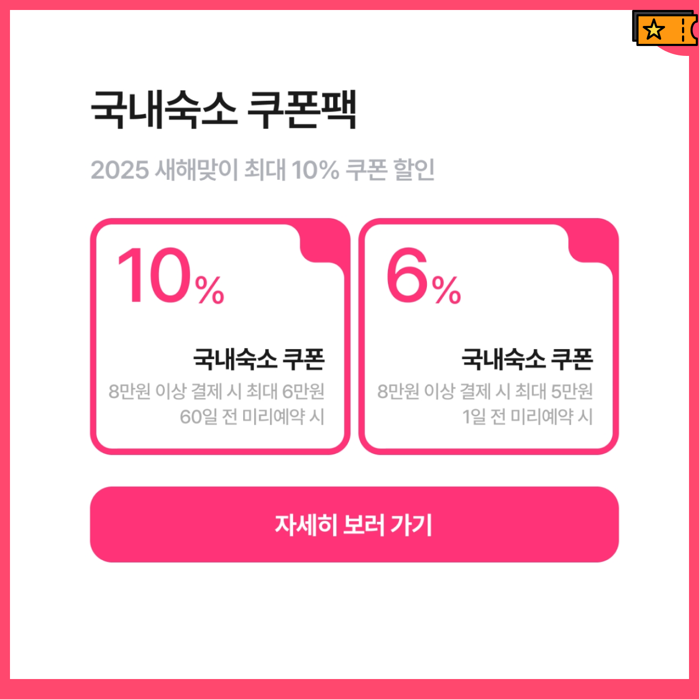 | NOL 야놀자 10월 쿠폰 숙박페스타 프로모션 국내 해외 (0) | 2025.10.09 |