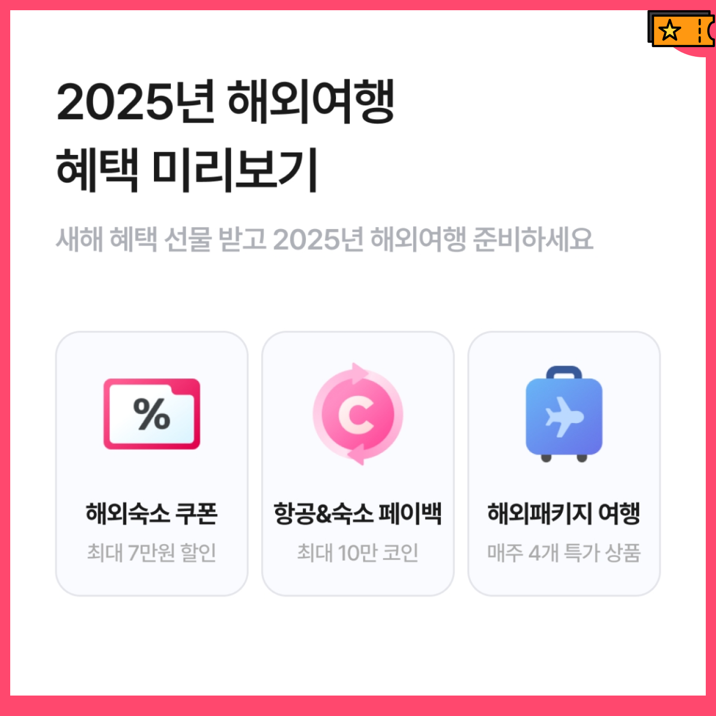 우선 2025년 해외여행 항공권 얼리버드 쿠폰팩을 활용하면 최대 7만원까지도 혜택을 받으실 수 있습니다.