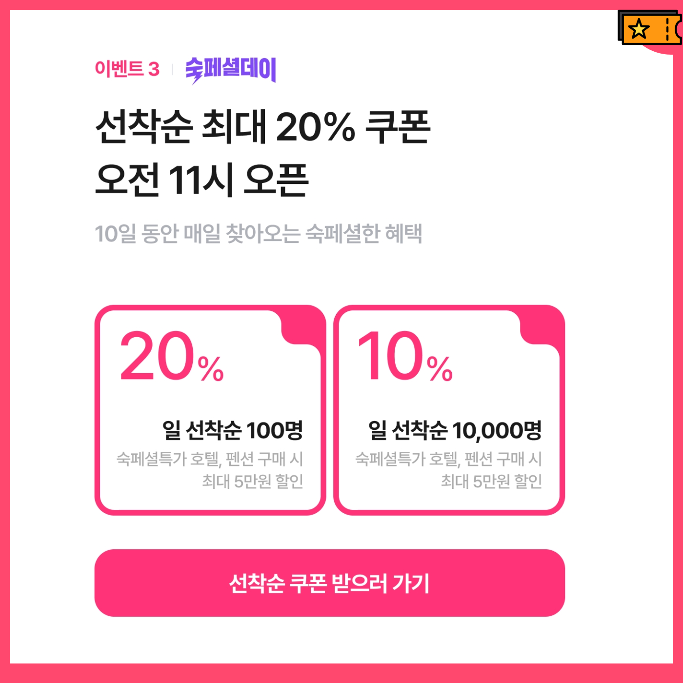 | NOL 야놀자 10월 쿠폰 숙박페스타 프로모션 국내 해외 (0) | 2025.10.09 |
