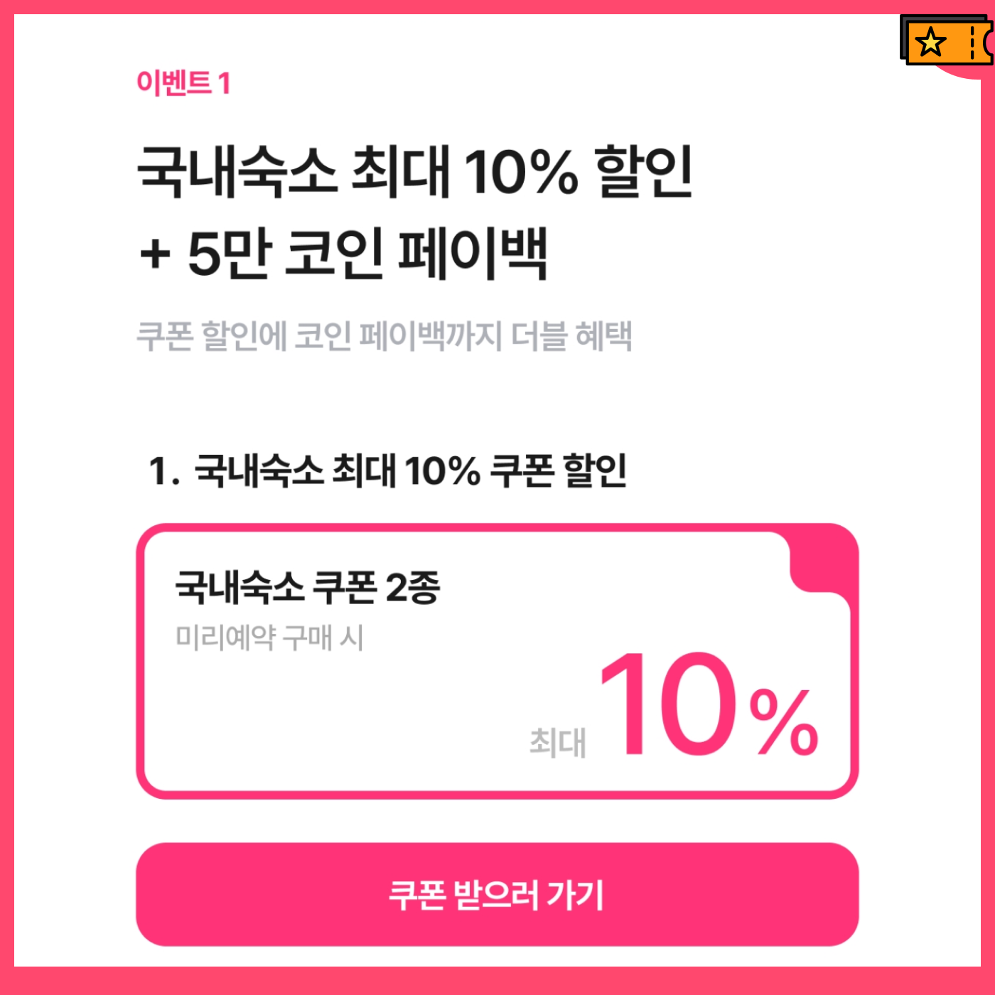 그리고 야놀자 할인쿠폰을 적용한 이후에 최대 5만 코인 페이백까지 받을 수 있으니 잘 확인해 보시고 페이백까지 꼭 챙겨 보시길 바랍니다.