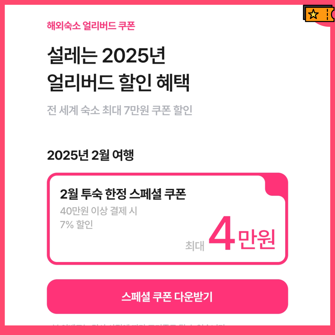 항공권 뿐만 아니라 해외숙소 쿠폰도 있는데요!
