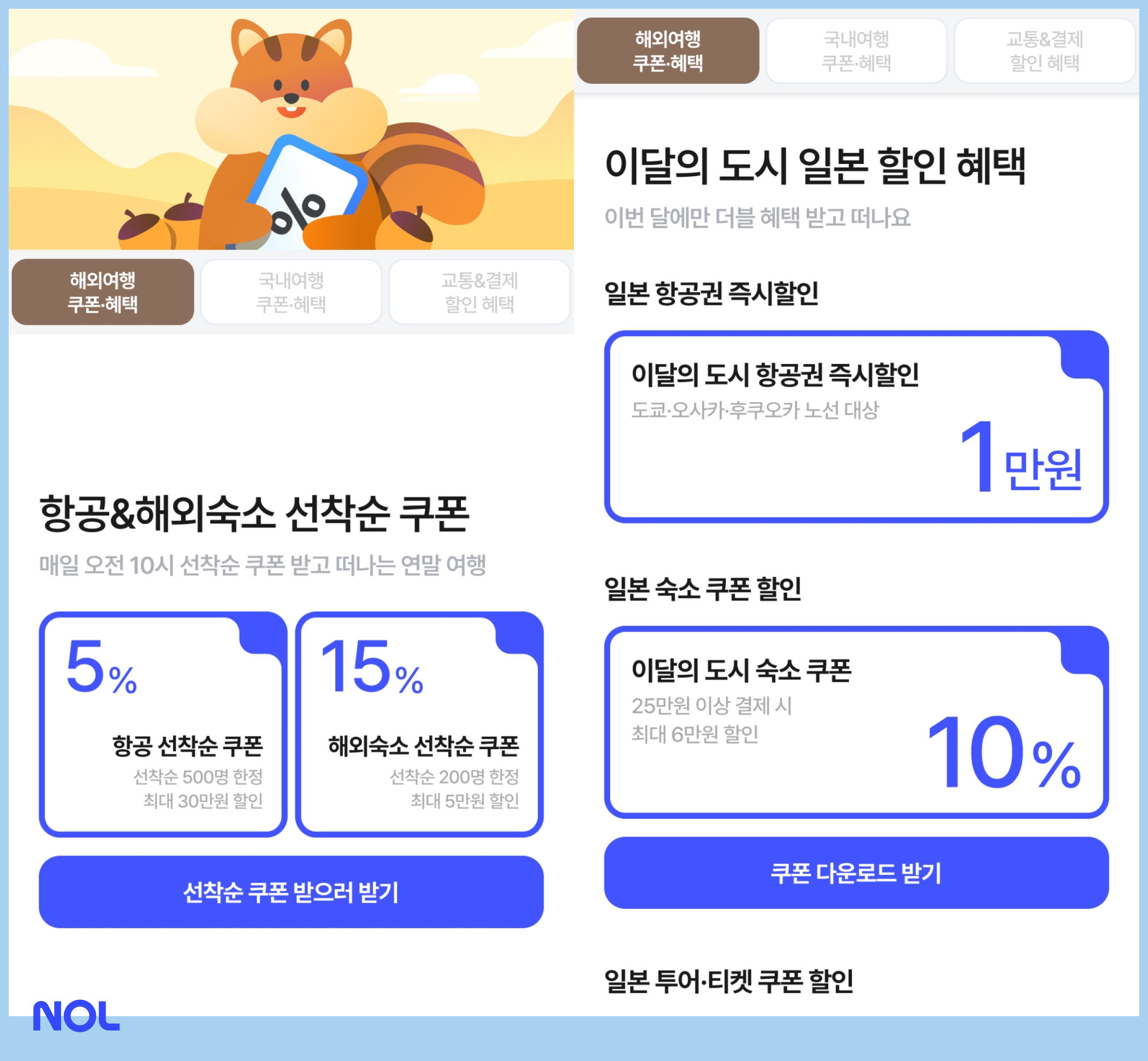 가장 먼저 소개해 드릴 혜택은 NOL 야놀자 10월 쿠폰팩입니다.